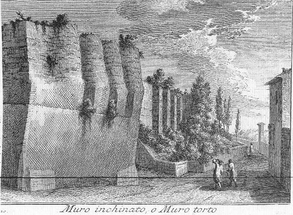 Il tratto di muro interessato è un’opera di contenimento per le frane realizzata in tessere di tufo che confina con Villa Borghese, dà le spalle al colle Pincio e la cui origine risale all’età repubblicana romana. Esso infatti era il confine di una delle ville aristocratiche erette in quel punto(le dimore degli Acilii, Anicii e Pinci, da questi ultimi prende infatti il nome del colle). Nel medioevo veniva chiamato “Muro Ruptus”, poi chiamato “Muro Malo” ed infine Muro Torto(dando il nome all’attuale viale sottostante).