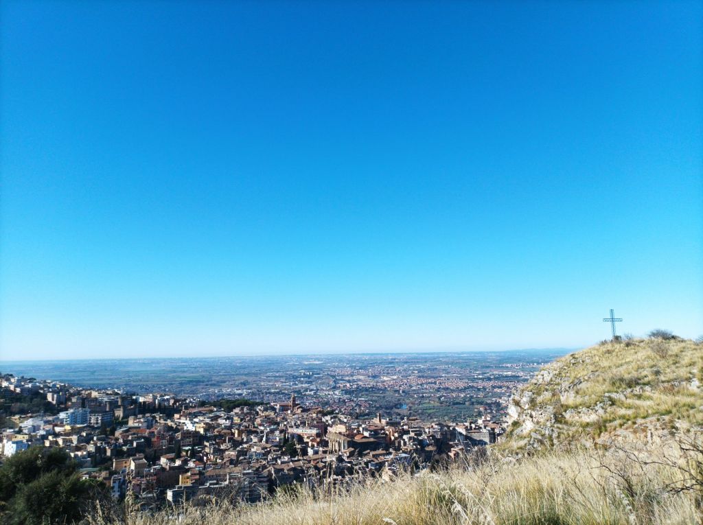Muoviamo così i nostri passi dal punto di partenza (l’Arco di Quintilio Varo) su per la strada asfaltata e all’ imbocco del sentiero -n.330- che ci porterà sul Monte. All’ inizio la salita si fa un po’ sentire ma presto si arriva alla croce: il punto offre un primo spettacolare sguardo panoramico sulla città e sulla pianura tutt’intorno ad essa.