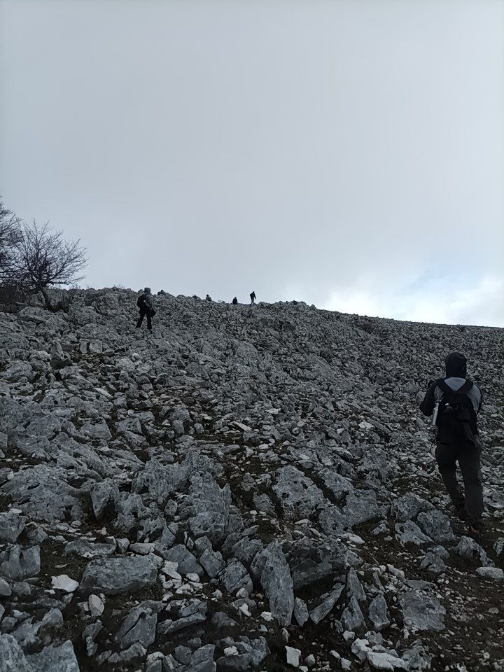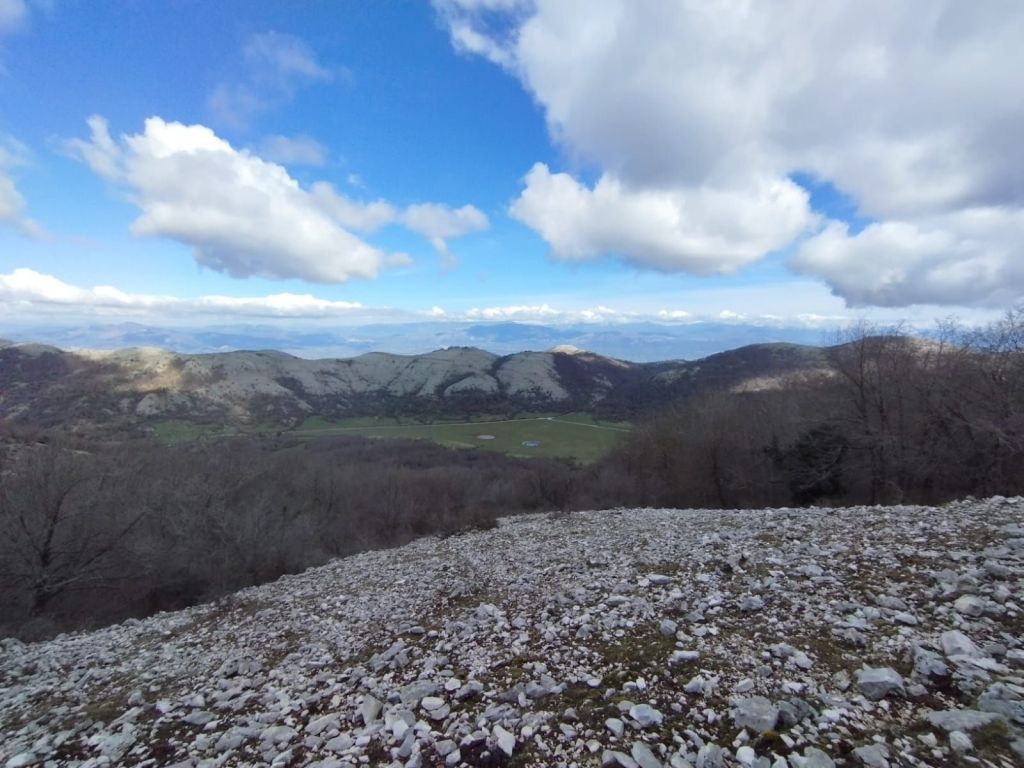 Qui il sentiero è sostanzialmente rettilineo fino alla brulla e sassosa cima: nei pressi della croce, a 1378 m.s.l.m. si può godere di un paesaggio quasi a 360 gradi sul Lazio meridionale, a sud-ovest la pianura pontina fino al Circeo e dalla parte opposta l’apennino laziale. Purtroppo nel nostro caso la stupenda vista ci è stata quasi subito negata da una grossa nuvola che ha letteralmente avvolto la cima ma ne è valsa lo stesso la pena. Si sa che il tempo cambia molto velocemente in queste zone.