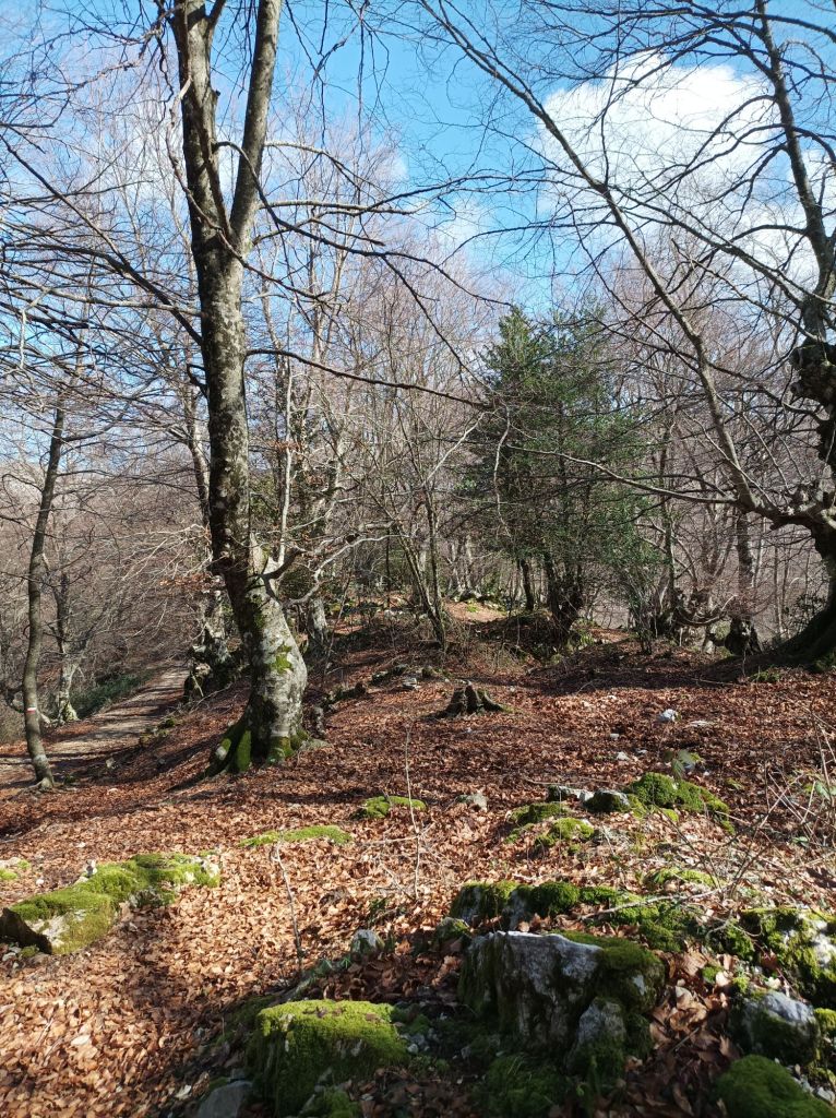 Il percorso scelto è ad anello ed inizia partendo dallo spettacolare Campo di Segni (dove si lasciano le auto); non abbiamo attraversato il campo ma abbiamo preso a destra, decidendo perciò di fare il giro lungo per arrivare sulla cima del Monte Lupone. Il percorso, raggiunto il primo bivio, prosegue a sinistra e di nuovo nella stessa direzione al secondo bivio. Qui comincia una salita leggermente impegnativa (a meno che voi non siate esperti ed allenati), si seguono le indicazioni per la cima fino a una terza biforcazione: consigliamo qui di fare molta attenzione perché il sentiero praticamente non è segnato e ci si sbaglia con molta facilità. In ogni caso il sentiero gira di nuovo a sinistra, in direzione del Monte Pizzone che nasconde alla vista la cima del Lupone. Si scollina sotto al Pizzone e si prosegue nel magnifico bosco di faggi. Questi magnifici alberi sono coperti di un muschio verdissimo e nascondono spesso le tante di molti degli abitanti del bosco. Vi consigliamo di fermarvi qualche minuto in questo punto per godervi lo spettacolo.