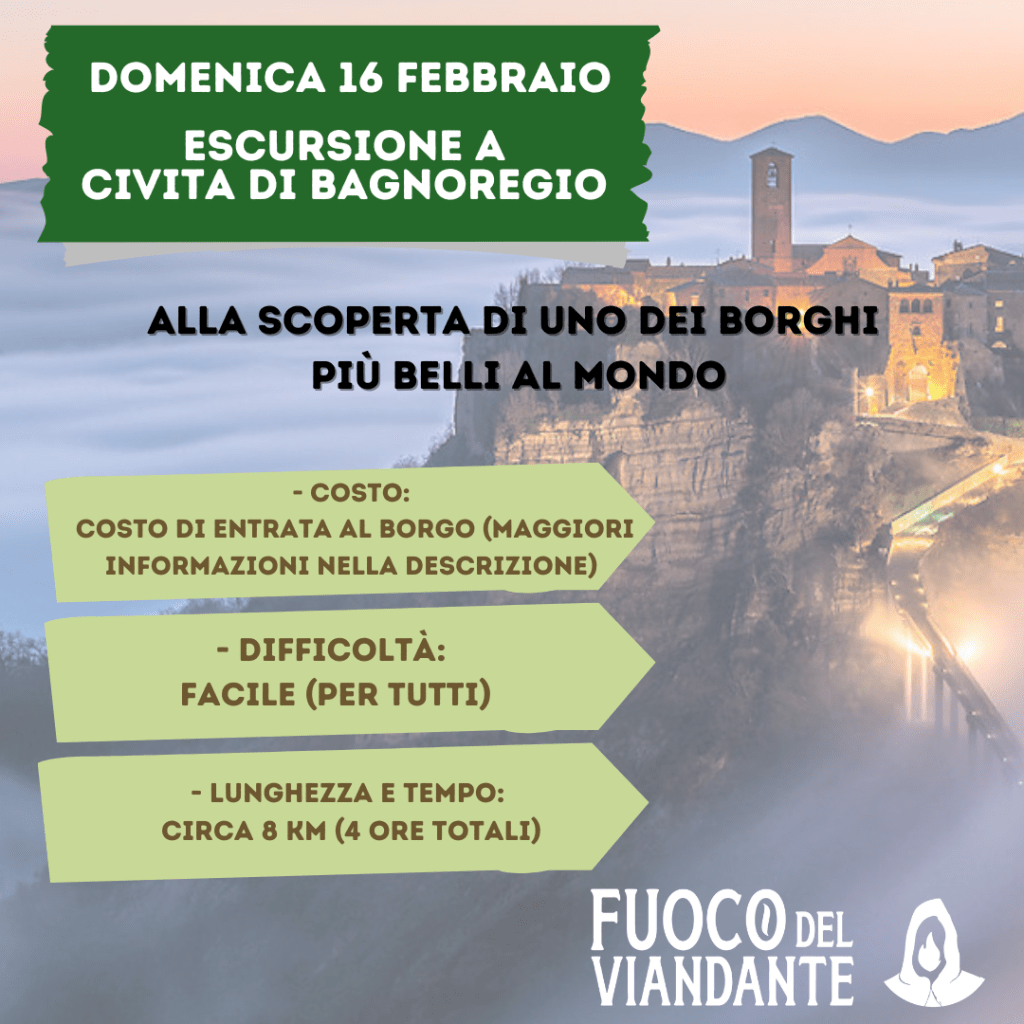 – Domenica 16 febbraio : Escursione a Civita Bagnoregio e dintorni, uno dei borghi più belli al mondo;