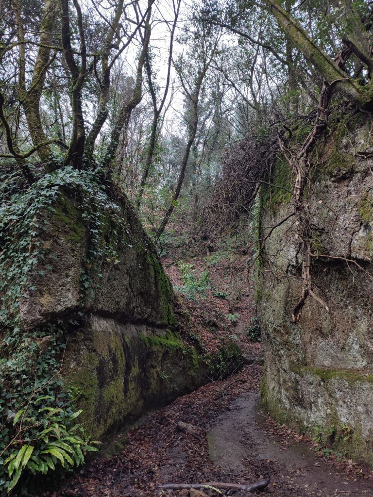 Si torna al ponte e si prosegue a sinistra per entrare nella meravigliosa Tagliata di Sant’Egidio: entrando in questa via cava sembra davvero di tornare indietro nel tempo e di trovarsi in un ambiente “altro” e affascinante.