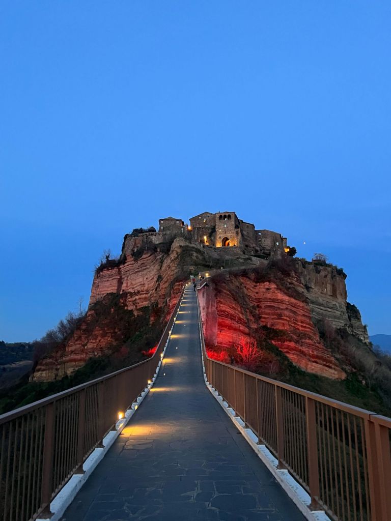 Ci siamo incamminati sulla strada asfaltata per tornare a Lubriano e recuperare le macchine e per poi dirigerci (questa volta in macchina) a Civita di Bagnoregio: il biglietto per entrare costa 5€ e l’attraversamento del ponte è una bella esperienza per gli occhi. Noi l’abbiamo fatta quasi al tramonto, cosa che ha migliorato ancora di più il paesaggio.