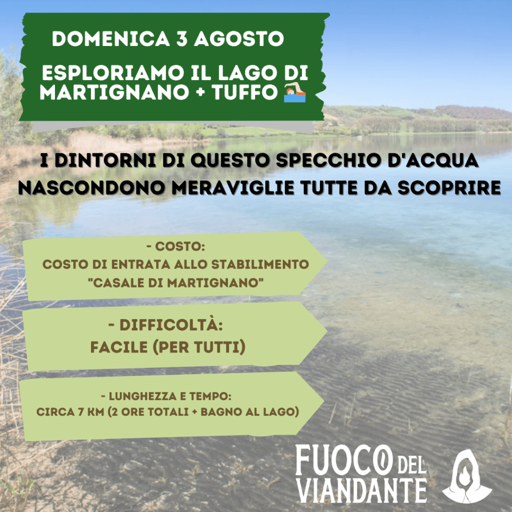 – Viandando donenica 3 Agosto + bonus acquatico: Mini trekking sul Lago di Martignano per immergersi nella riserva naturale dello specchio d’acqua amato già dagli antichi romani + Tuffo nel lago e aperitivo palustre!