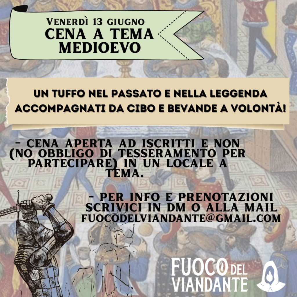 – “Una cena tanto attesa” Venerdì 13 Giugno presso il Pub Avalon (Roma), faremo un tuffo nel medioevo e nelle leggende accompagnati da ottimo cibo e birra a volontà! (Per info e prenotazioni scriveteci in DM);