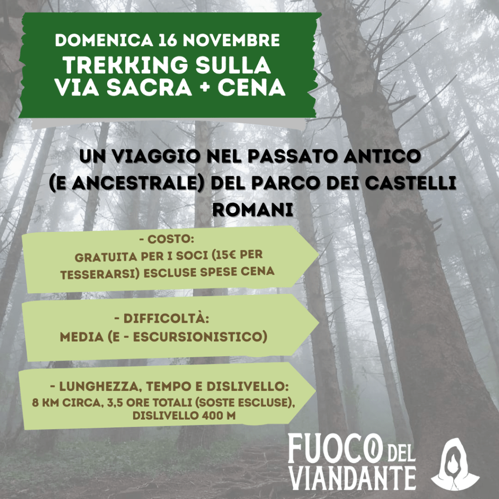 - Domenica 16 novembre: Si sale sul Mons Albanus (oggi Monte Cavo), sull’antica strada lastricata millenni fa dai popoli latini, fino al belvedere sui laghi dei Castelli. E poi se magna! 🍝🍺 (Secret location)